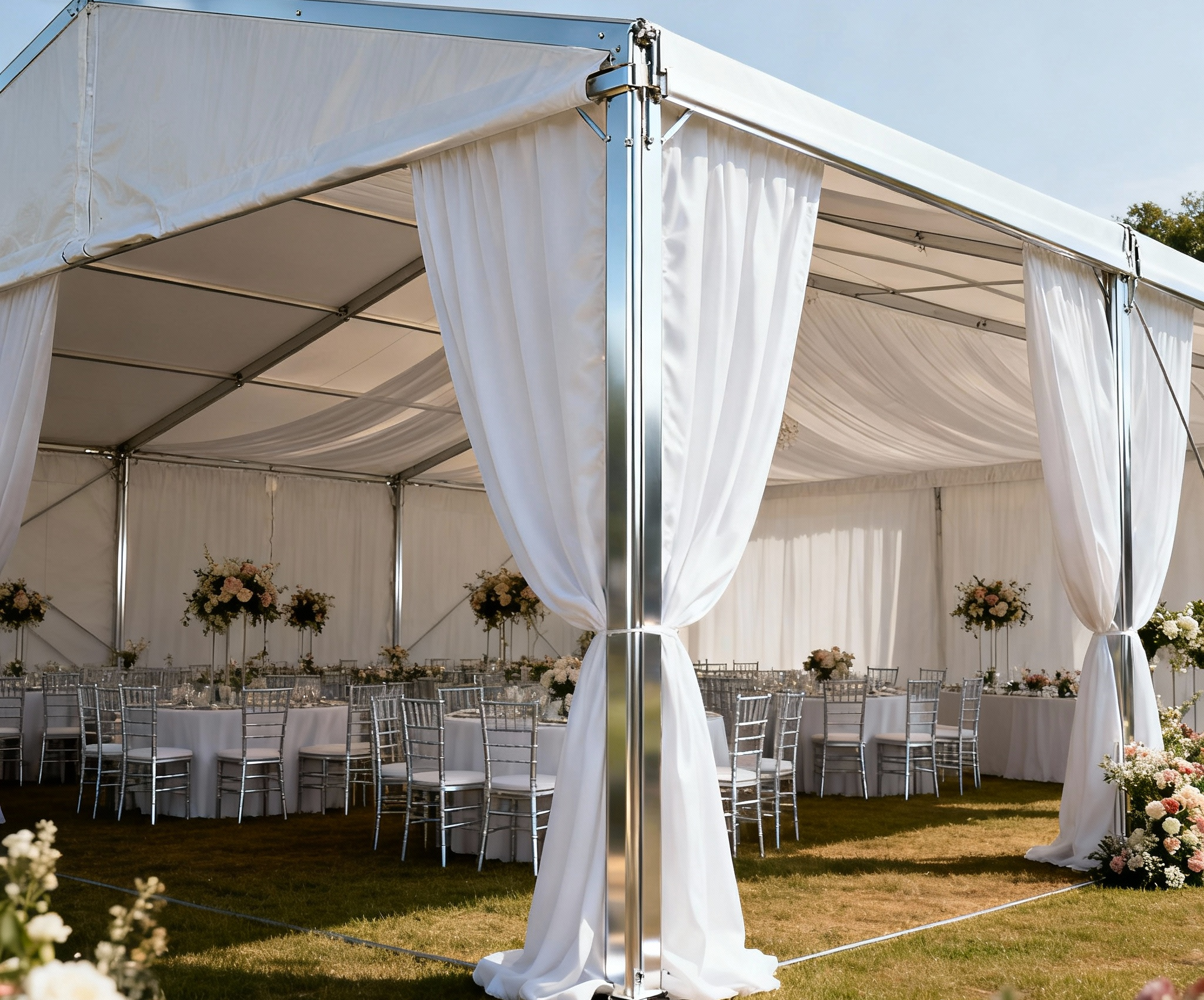 Constructed with high-quality materials, this outdoor wedding marquee tent is built to last. The durable aluminum frame provides stability and support, while the white fabric cover creates a clean and elegant look. The tent is also weather-resistant, ensuring your guests stay dry and comfortable during inclement weather