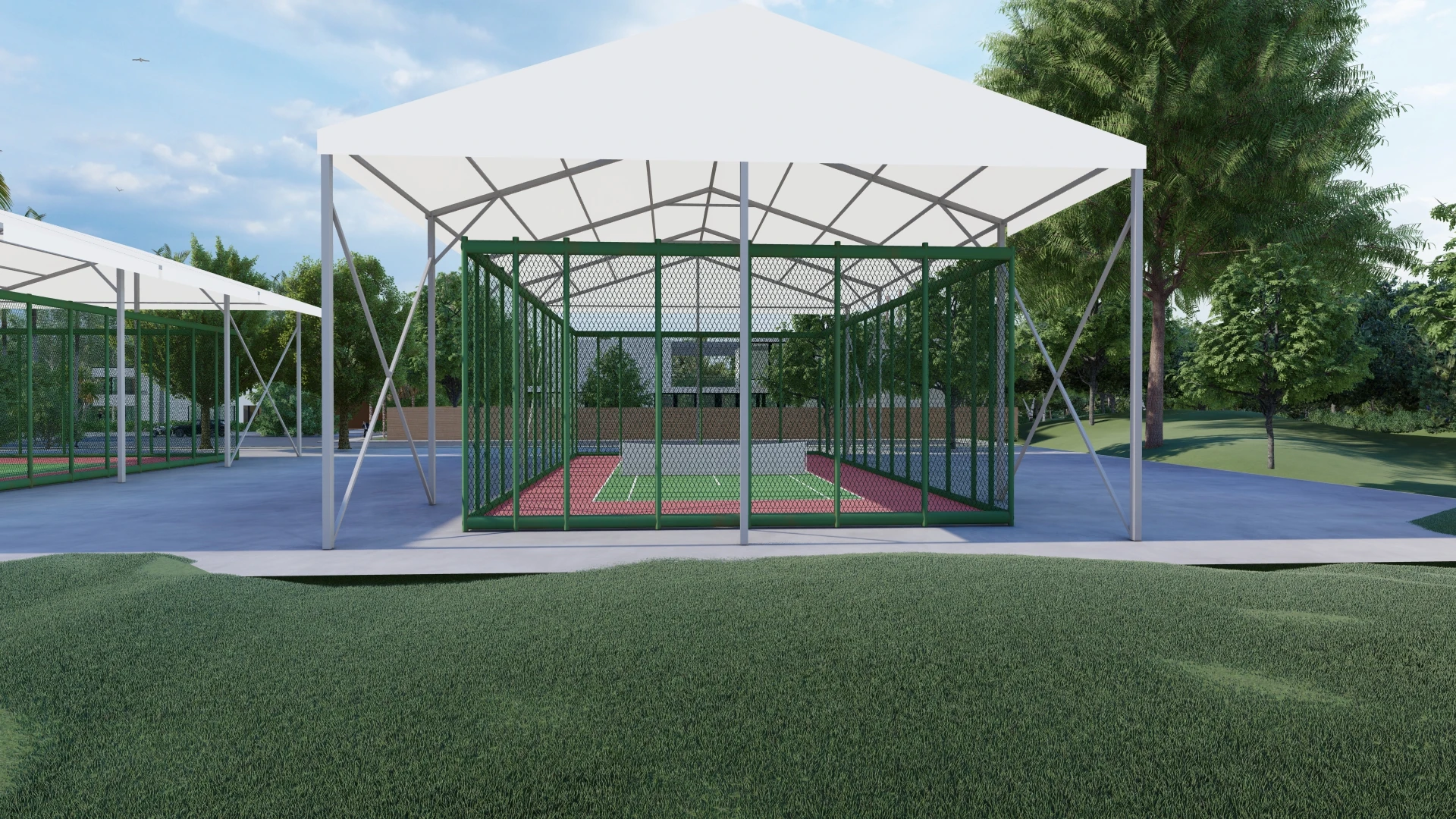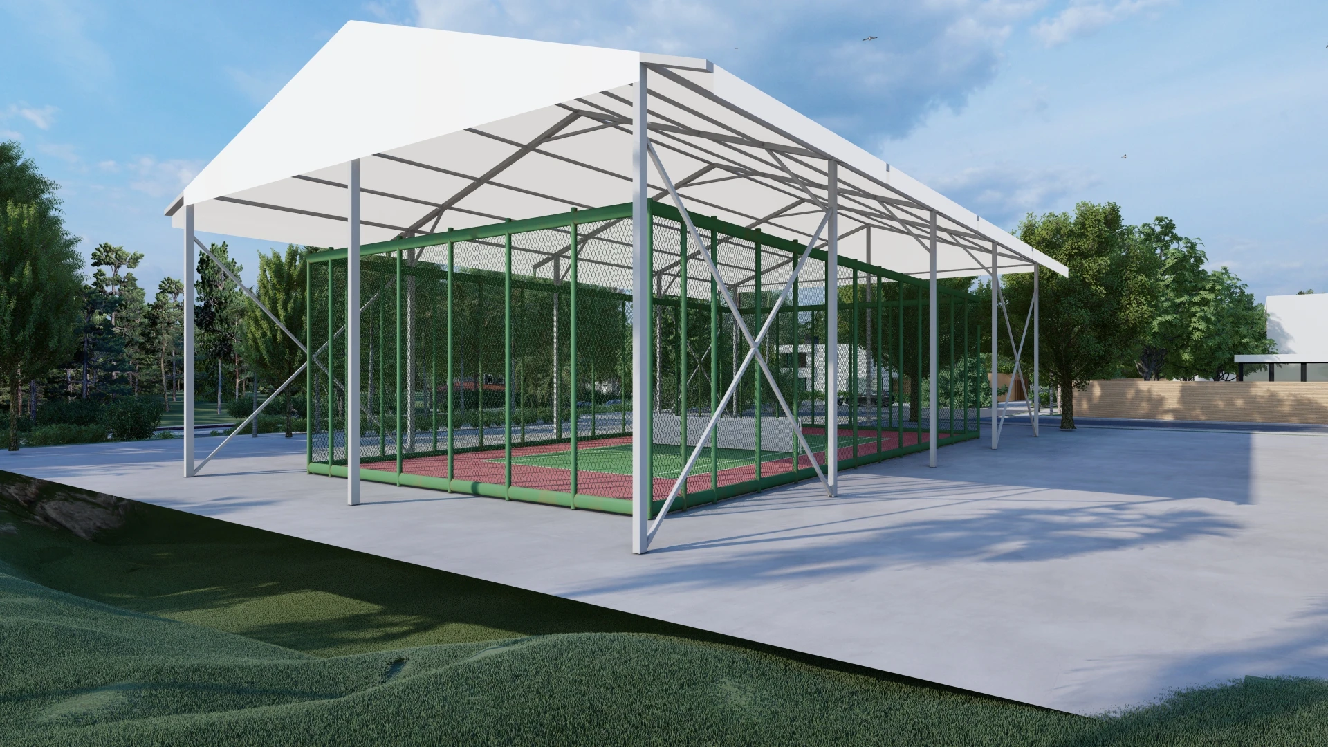 Not only does this canopy provide protection from the sun and rain, but it also adds a touch of elegance and sophistication to your outdoor sports court. The sleek and modern design will enhance the overall aesthetics of your space and make it a focal point for all who visit. Your guests and players will be impressed by the professional look and feel of your outdoor sports area.